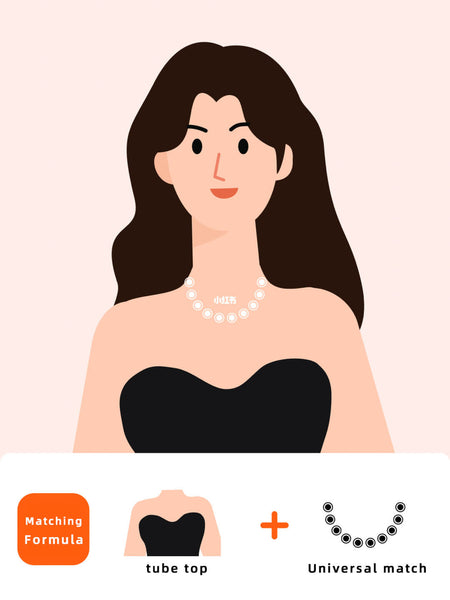 The tube top is very feminine, and it is generally suitable for all kinds of necklaces. If you match it with short, round, or small V necklaces, the temperament will be more unified.
