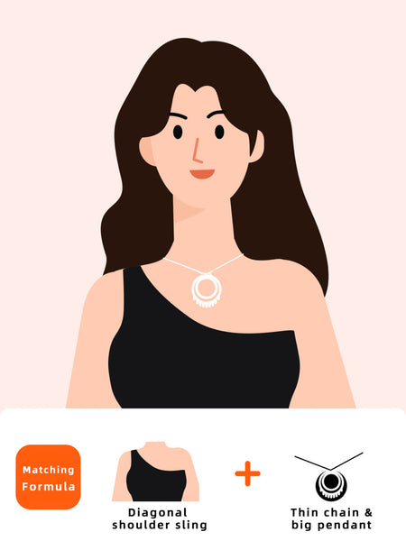 Slanted shoulder slings are generally worn as dresses or vacations. Generally, thick necklaces will destroy the lines of the slanted shoulders. It is recommended to match thin chains and more voluminous pendants, which are more eye-catching.