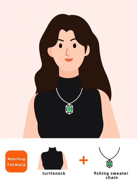 The turtleneck is very elegant and shows little skin. It is recommended to wear a necklace with a drape to make the neck look slender and elegant.
