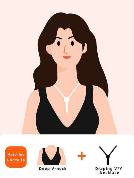 The general V-neck is more versatile, such as pearls, clavicle chains, and stacked in various lengths. But if it is a deep V-neck, it is very distinctive. It is recommended to match it with a V-shaped or Y-shaped necklace with a sense of fishing, which echoes the characteristics of the clothes.