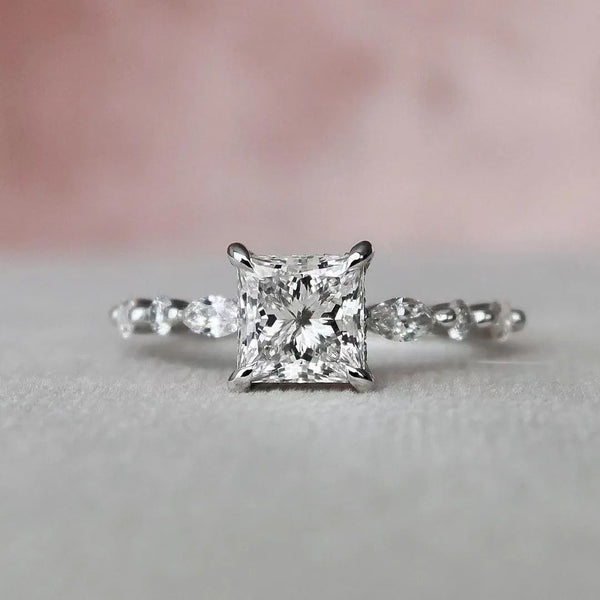 The four corners of the princess-cut diamond are very sharp. If it collides with other objects vigorously, it will scratch furniture, clothing, skin, etc., and it may also cause damage to the sharp corners of the diamond due to an inch of force.