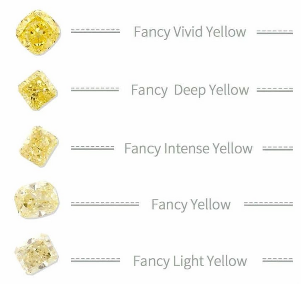 Combined with ordinary diamond color grades, only yellow that exceeds Z color can be called Fancy (fancy), and yellow diamonds of general fancy color diamond grade, from low to high, are: