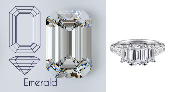 Emerald Cut Diamond An emerald cut diamond is long and rectangular with step-cut facets. It has a larger table and less depth, making it appear larger than other shapes of the same carat weight.