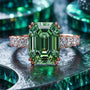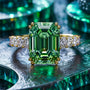 Kamelienring mit smaragdgrünem Edelstein im Smaragdschliff