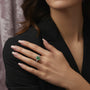 Inspiriert von der zeitlosen Eleganz der Natur, besticht die Kamelie durch einen atemberaubenden , smaragdgeschliffenen grünen Edelstein , der ein üppiges, lebendiges Leuchten ausstrahlt und Erneuerung, Harmonie und ewige Liebe symbolisiert. Ihre markante Smaragdsilhouette zieht die Blicke auf sich, während die ruhigen Grüntöne Ausgeglichenheit und innere Stärke vermitteln.