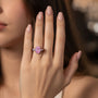 Lernen Sie den Ring Camilla kennen – ein strahlender Ausdruck von Liebe und Stil. Dieser atemberaubende Ring besticht durch einen ovalen, rosafarbenen Edelstein , der mit höchster Präzision geschliffen wurde und so für außergewöhnliche Brillanz und eine zeitlos elegante Form sorgt. Der Ovalschliff ist für seine sanften Rundungen und sein faszinierendes Funkeln bekannt und macht ihn zur perfekten Wahl für alle, die sich einen klassischen Ring mit einer anmutigen Note wünschen.