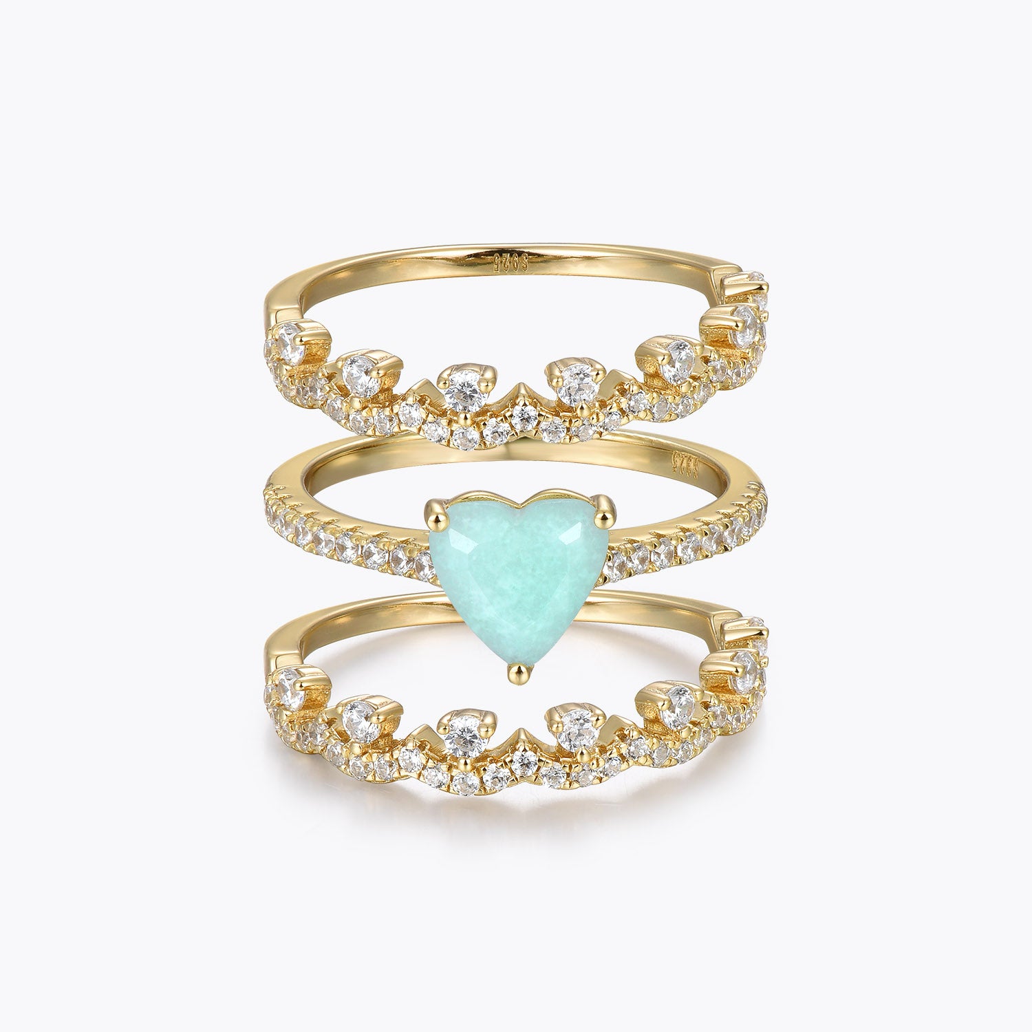 Dissoo® Herz-Pavé-Brautset aus Amazonit, dreiteilig, mit Krone