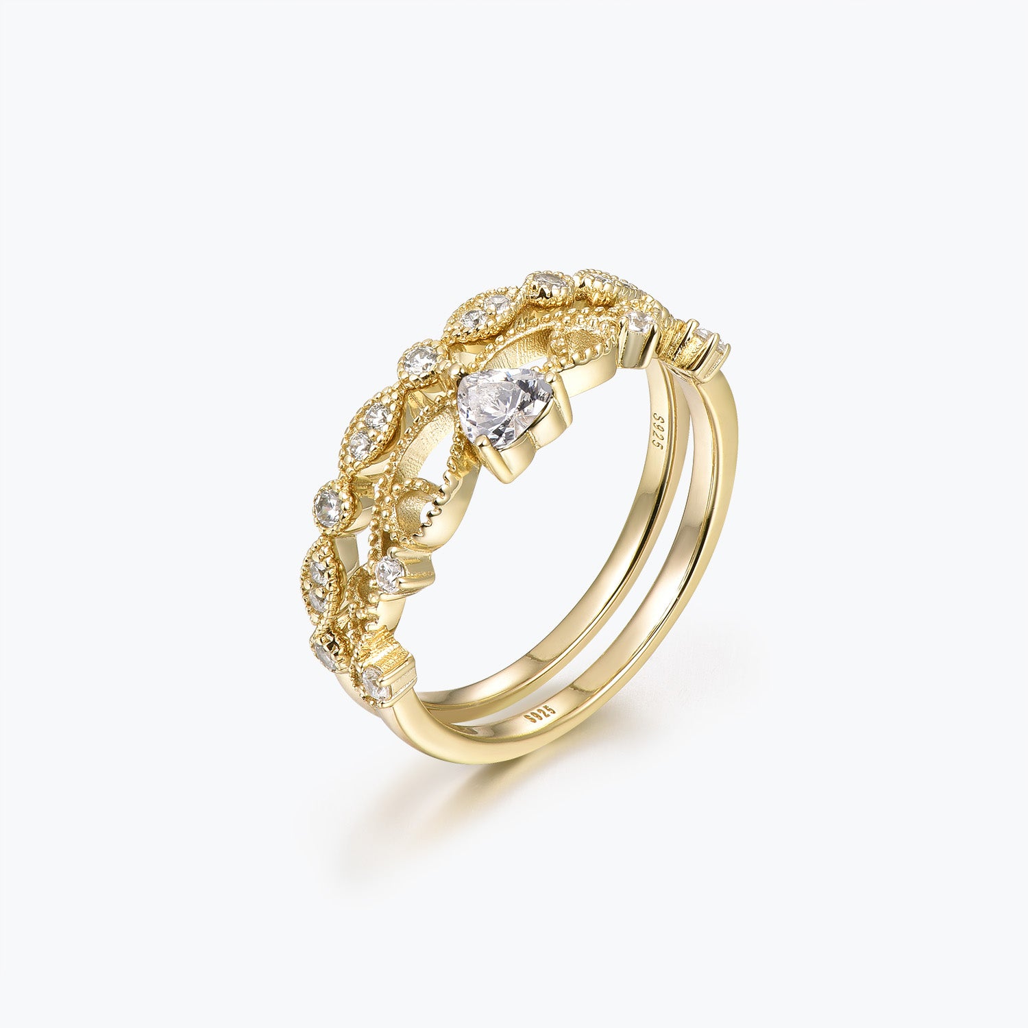Dissoo® Verlobungsring mit herzförmigem Kronen-Moissanit und goldener Versailles-Ehering