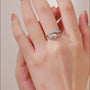 Dissoo® Ovaler Moissanit-Verlobungsring mit gebogenem Pavé-Schliff und gebogener Marquise-Akzent-Pavé-Ehering