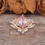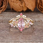 Virelia Vintage Ring mit smaragdgeschliffenem, verschlungenem Zweig und rosa Edelstein