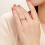 Dieses atemberaubende Schmuckstück besticht durch einen 1-Karat-Amazonit im Ovalschliff – ein Inbegriff von Eleganz und Schönheit. Die einzigartige, beidseitig mit Pavé-Fassung versehene Ringschiene verleiht diesem zeitlosen Design eine moderne Note.