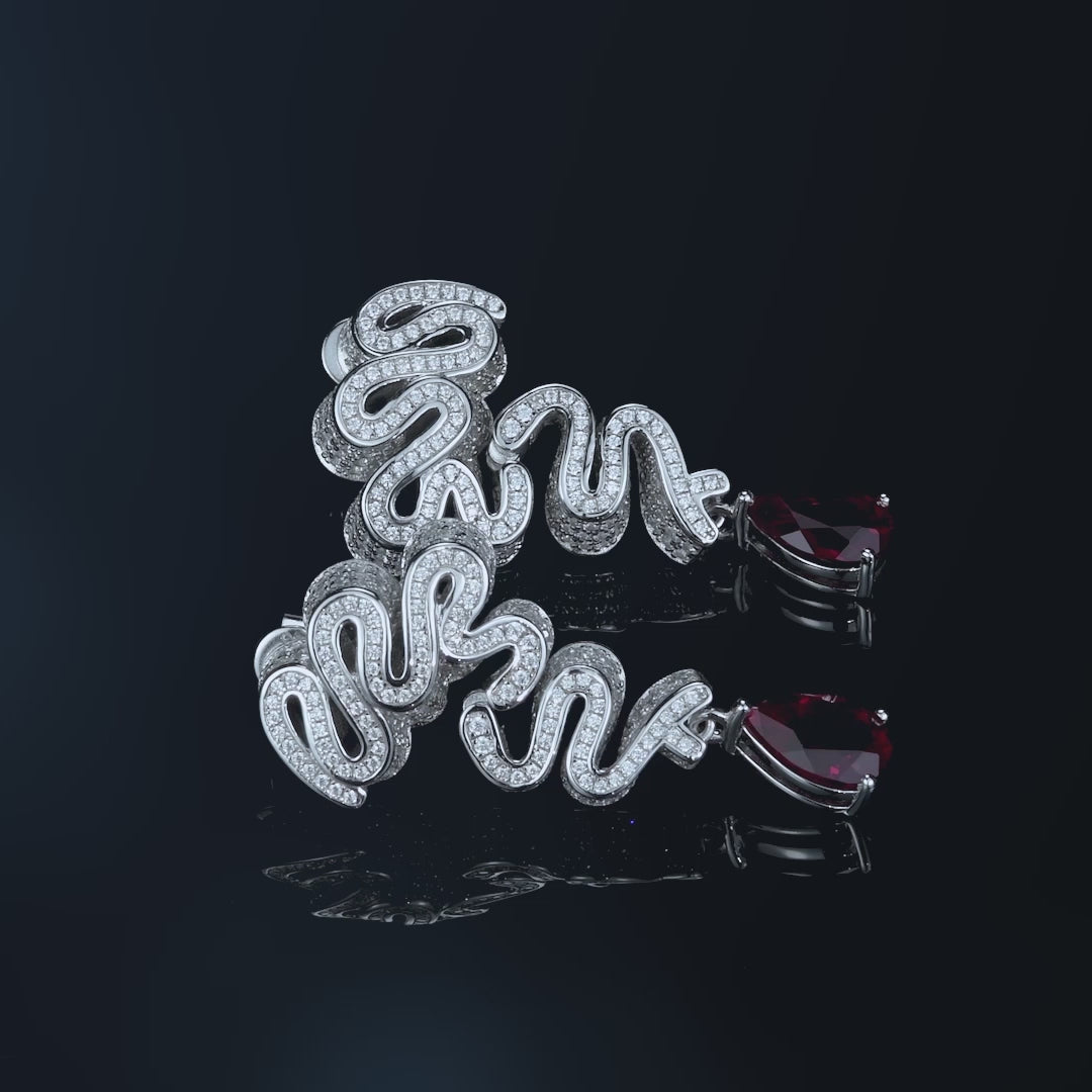 Dissoo® Schlangen-Ohrringe aus Sterlingsilber mit wasserförmigem Rubin