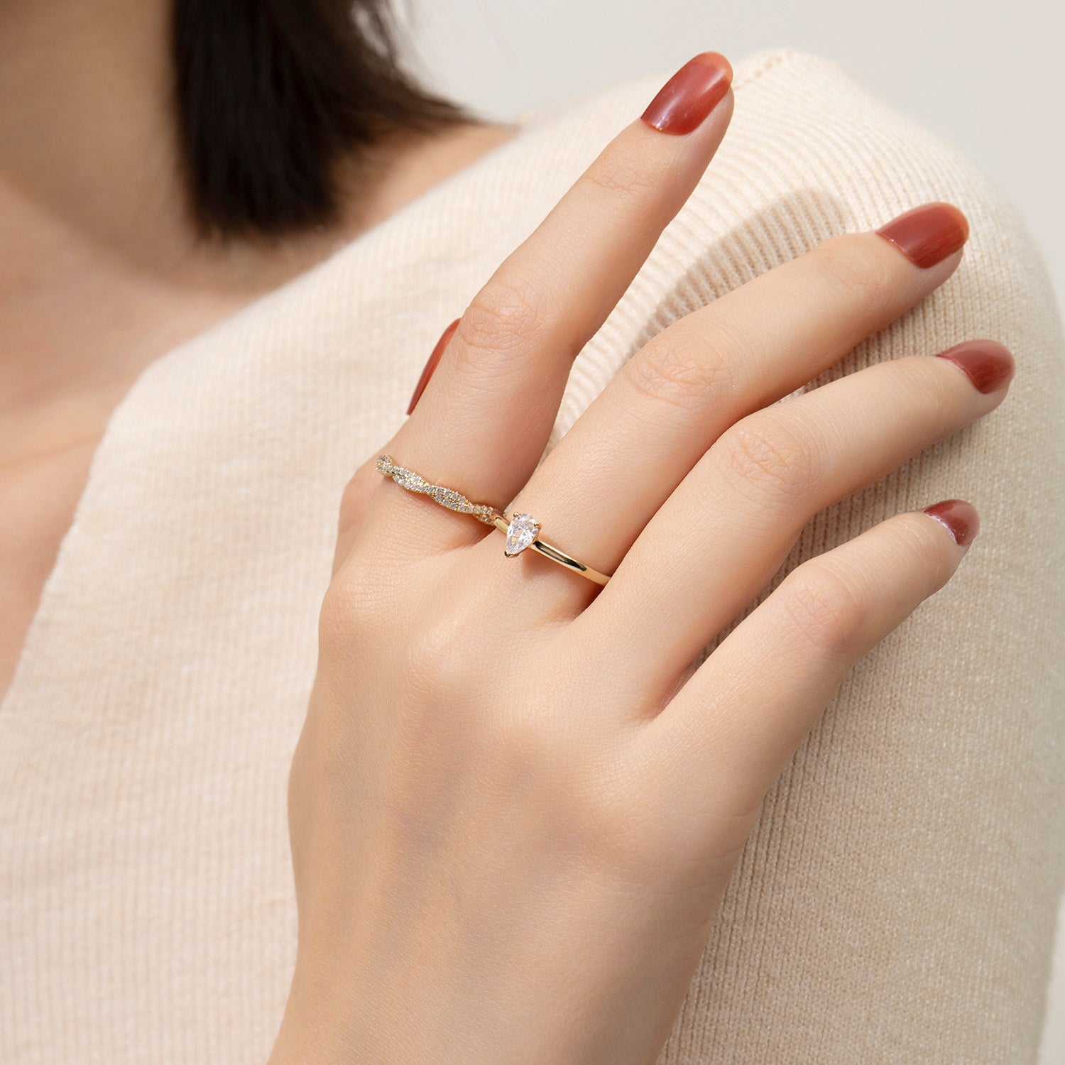 Wir präsentieren das ultimative Symbol der Liebe und Verbundenheit – unser Dissoo® Gold Birnen-Solitär-Verlobungsring-Set mit Moissanit und dem passenden Pavé-Ehering. Der atemberaubende Gold Birnen-Solitär-Verlobungsring besticht durch einen funkelnden, 0,5 ct schweren, birnenförmigen Moissanit, der meisterhaft geschliffen wurde, um jedes Lichtspiel einzufangen. Eingefasst in ein glänzendes Goldband, strahlt dieser Ring Eleganz und Raffinesse aus.