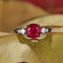 Der Alina-Ring aus im Labor gezüchtetem Rubin mit Eiscrackle-Textur in Schwarzgold