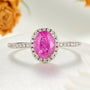 Der Odette Oval Cut Lab Grown Rose Sapphire Halo Ice-crackle Texture Ring