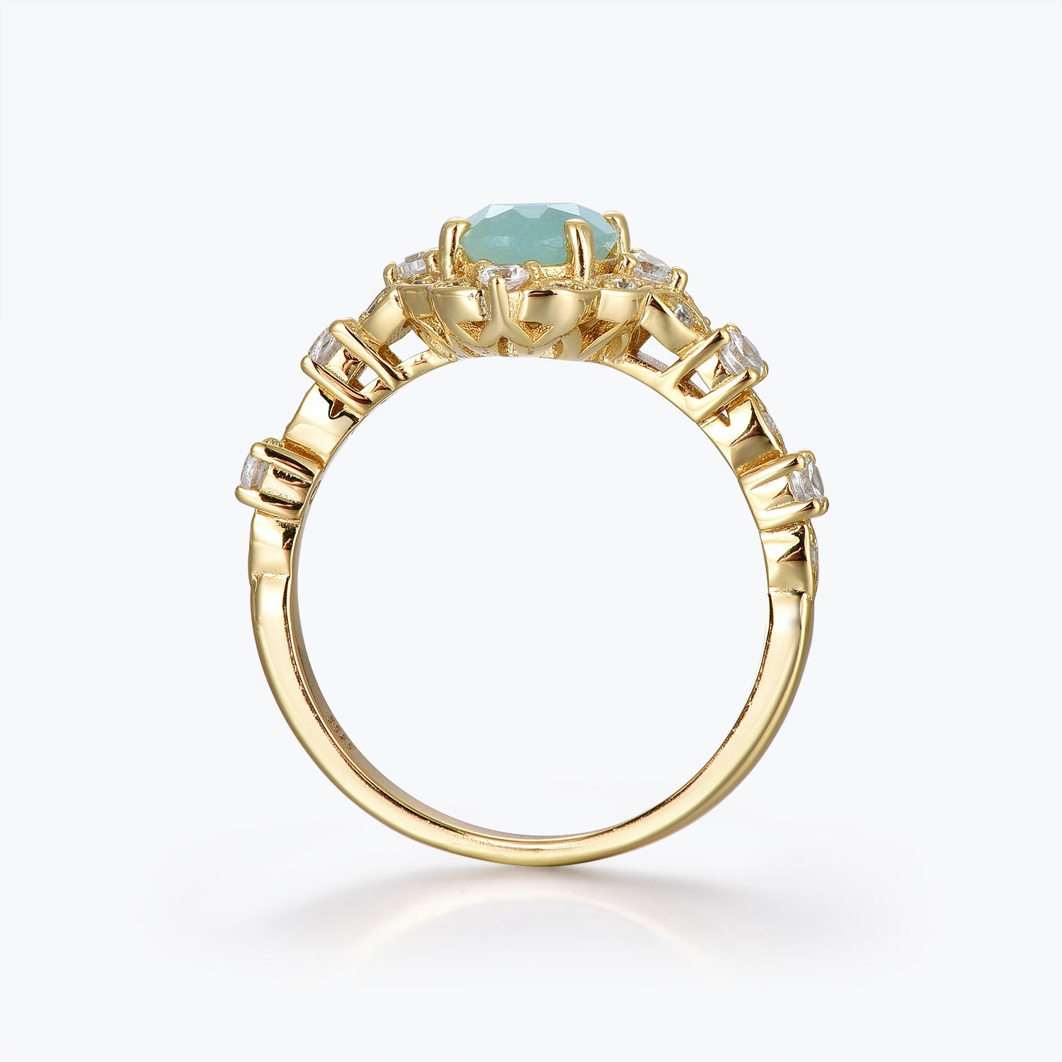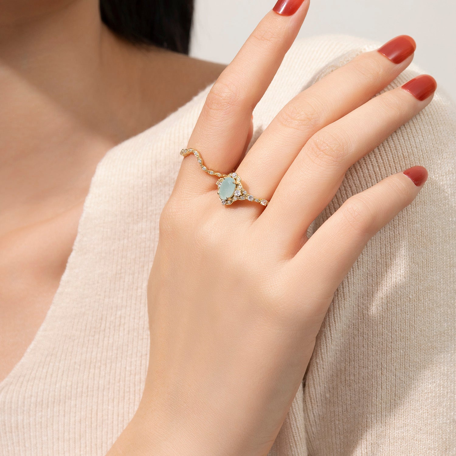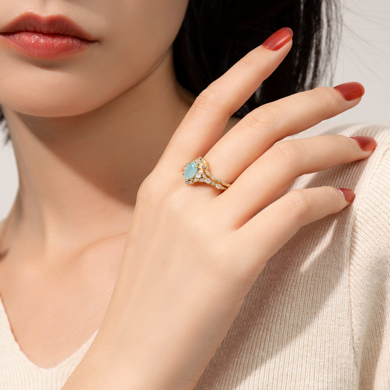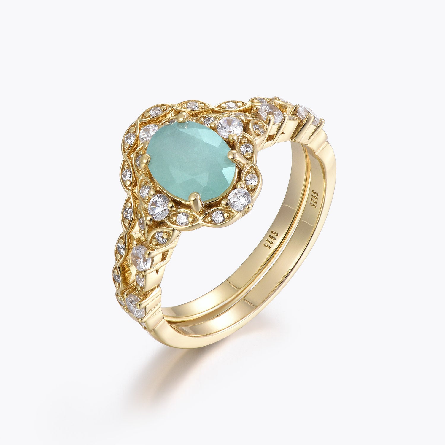 Dissoo® Ovales Halo-Brautset aus Amazonit mit gebogenem Versailles-Moissanit-Ring