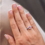 Die Venus ist ein atemberaubender, runder, rosafarbener Edelstein Ein Ring, der Romantik und Eleganz ausstrahlt. Der Stein, gefasst in einer klassischen Krappenfassung mit einem zarten Halo, besticht durch seine strahlende Brillanz und seinen Charme und symbolisiert Liebe und Raffinesse.