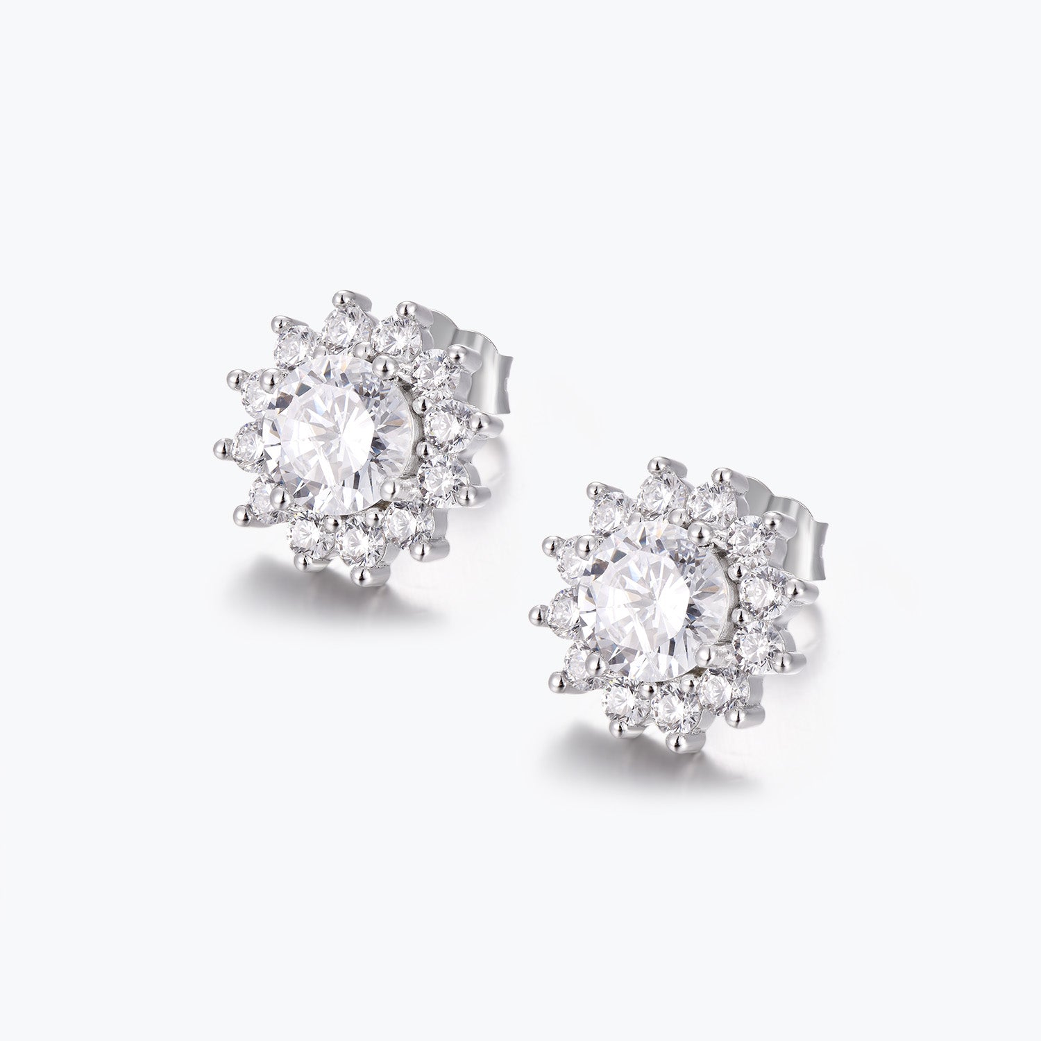 Dissoo® Weißer runder Starlight Halo Ohrstecker aus Sterlingsilber