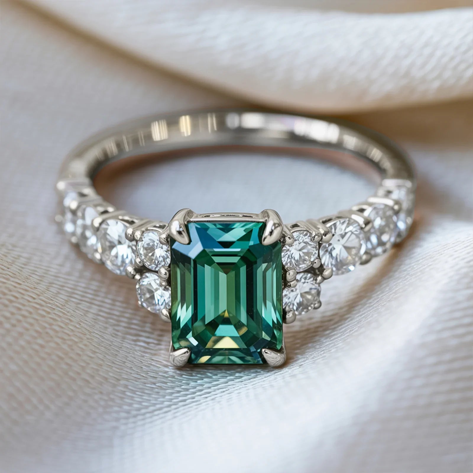 Der Adelina Rae Ring mit smaragdgeschliffenem grünem Edelstein