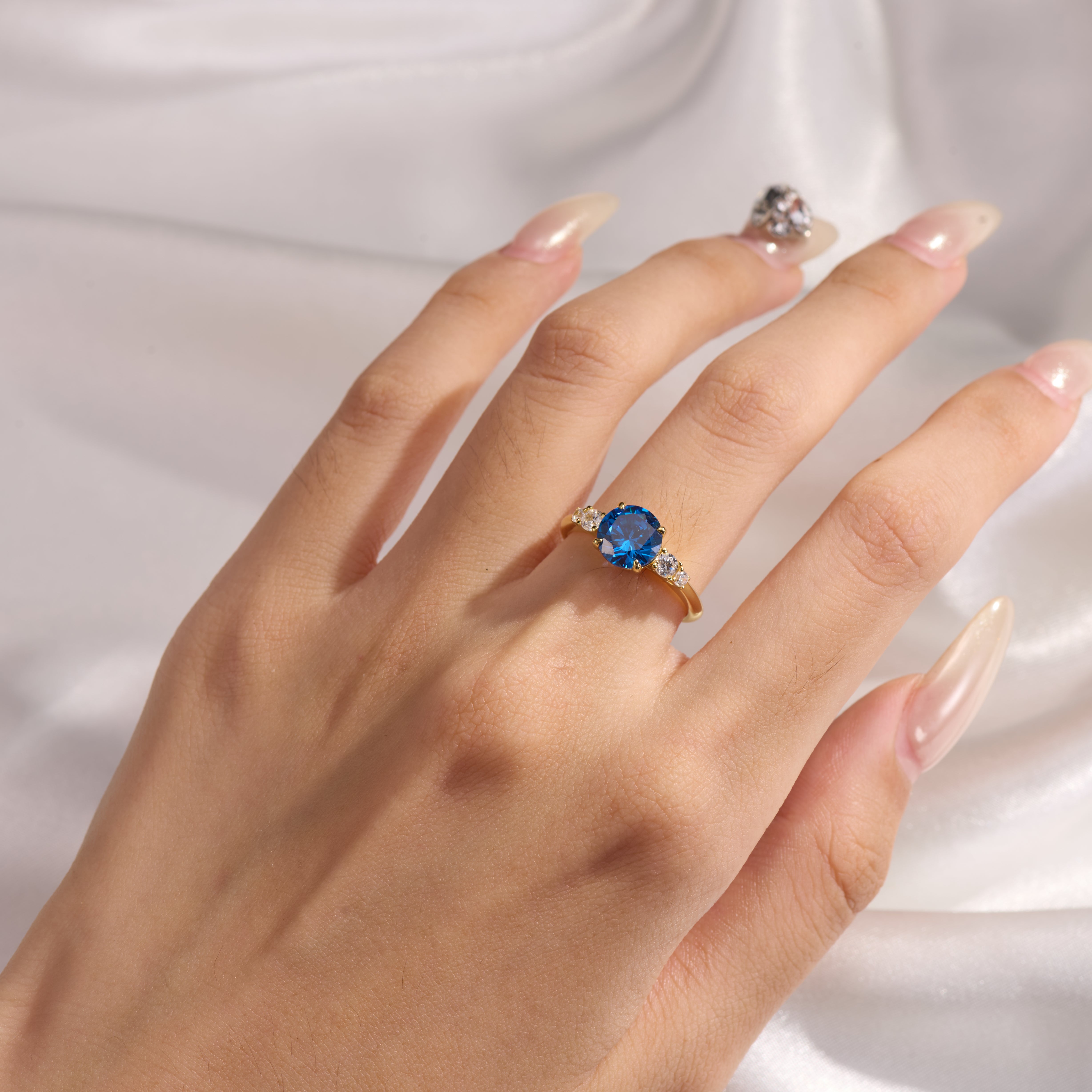 Der Alina Ring mit rundem, im Labor gezüchtetem Saphir