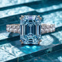 Der Smaragdschliff betont die Reinheit und Eleganz des Steins und erzeugt ein raffiniertes Funkeln, das bei jeder Bewegung das Licht einfängt. Zusammen mit einem schlichten, polierten Ringband vereint dieser Ring zeitlose Eleganz mit modernem Minimalismus zu einem wahrhaft unvergesslichen Schmuckstück.