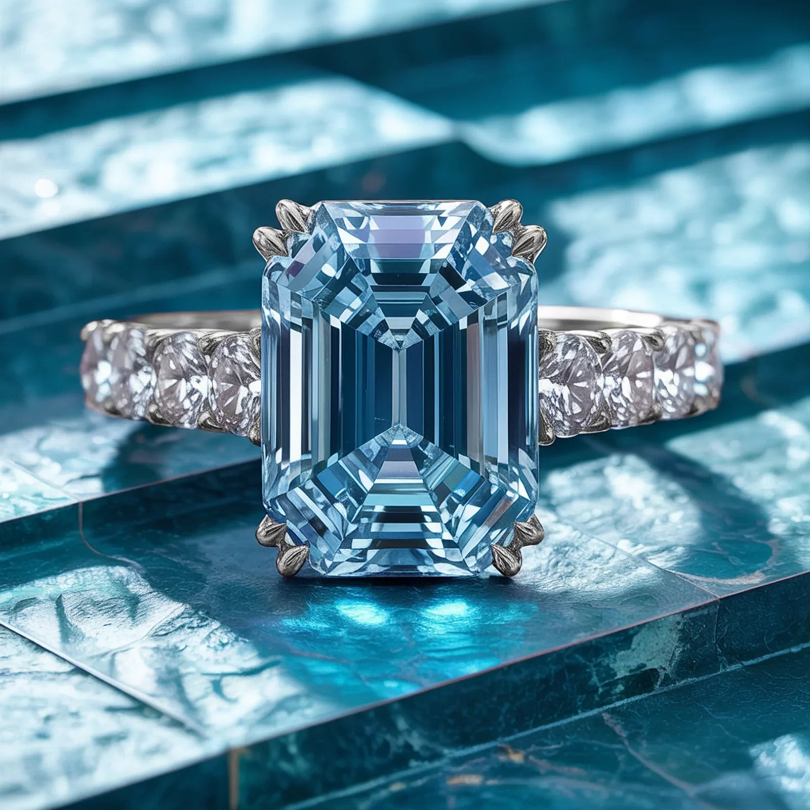 Anmutig und faszinierend wie der endlose Ozean: Der Kamelienring besticht durch einen strahlenden , smaragdgeschliffenen blauen Edelstein, der Ruhe und Tiefe ausstrahlt. 🌊 Sein leuchtender Farbton symbolisiert Treue, Weisheit und ewige Liebe und macht ihn somit zur perfekten Wahl für die bedeutungsvollsten Momente im Leben.