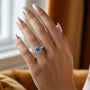 Der Kamelienring mit smaragdgeschliffenem blauem Edelstein