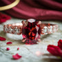 Der kühne und faszinierende Celestine-Ring mit ovalem, rotem Edelstein verkörpert die Leidenschaft und Stärke ewiger Liebe. Im Zentrum des Rings ruht ein markanter , oval geschliffener roter Edelstein , der feurig leuchtet und zeitlose Eleganz ausstrahlt. Sein sattes Purpurrot symbolisiert Hingabe, Mut und die unvergängliche Verbindung zweier Herzen.