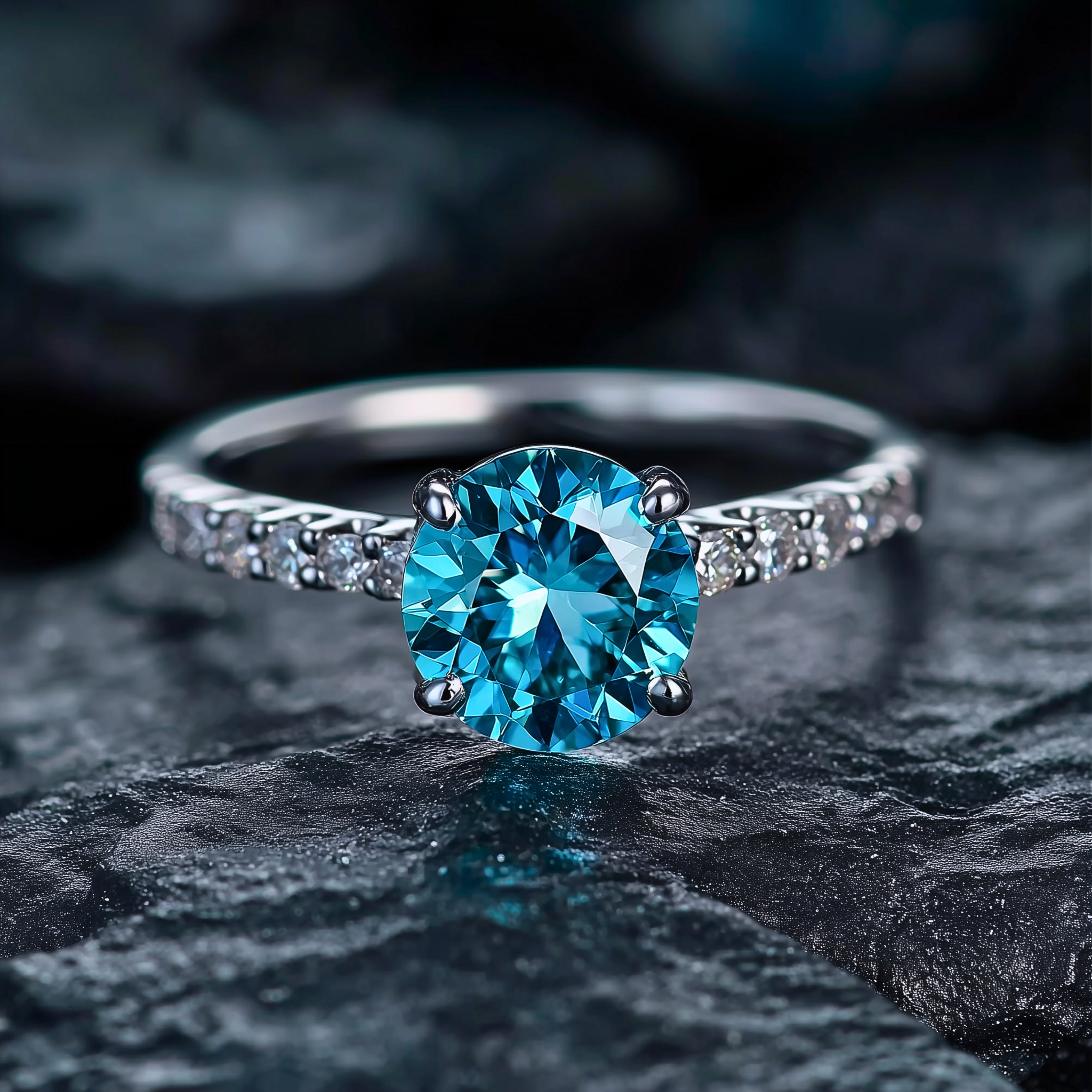 Der Romina-Ring mit rundem, blauem Edelstein