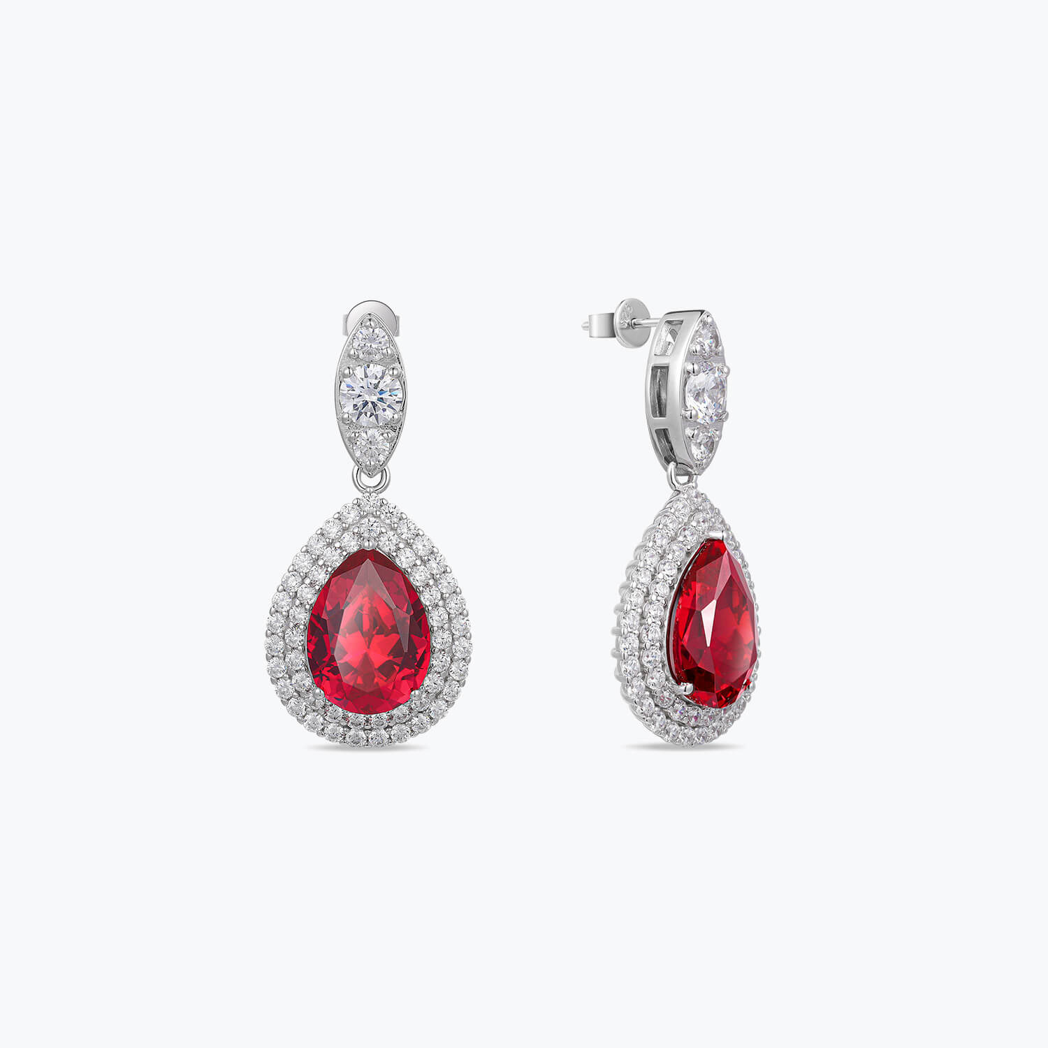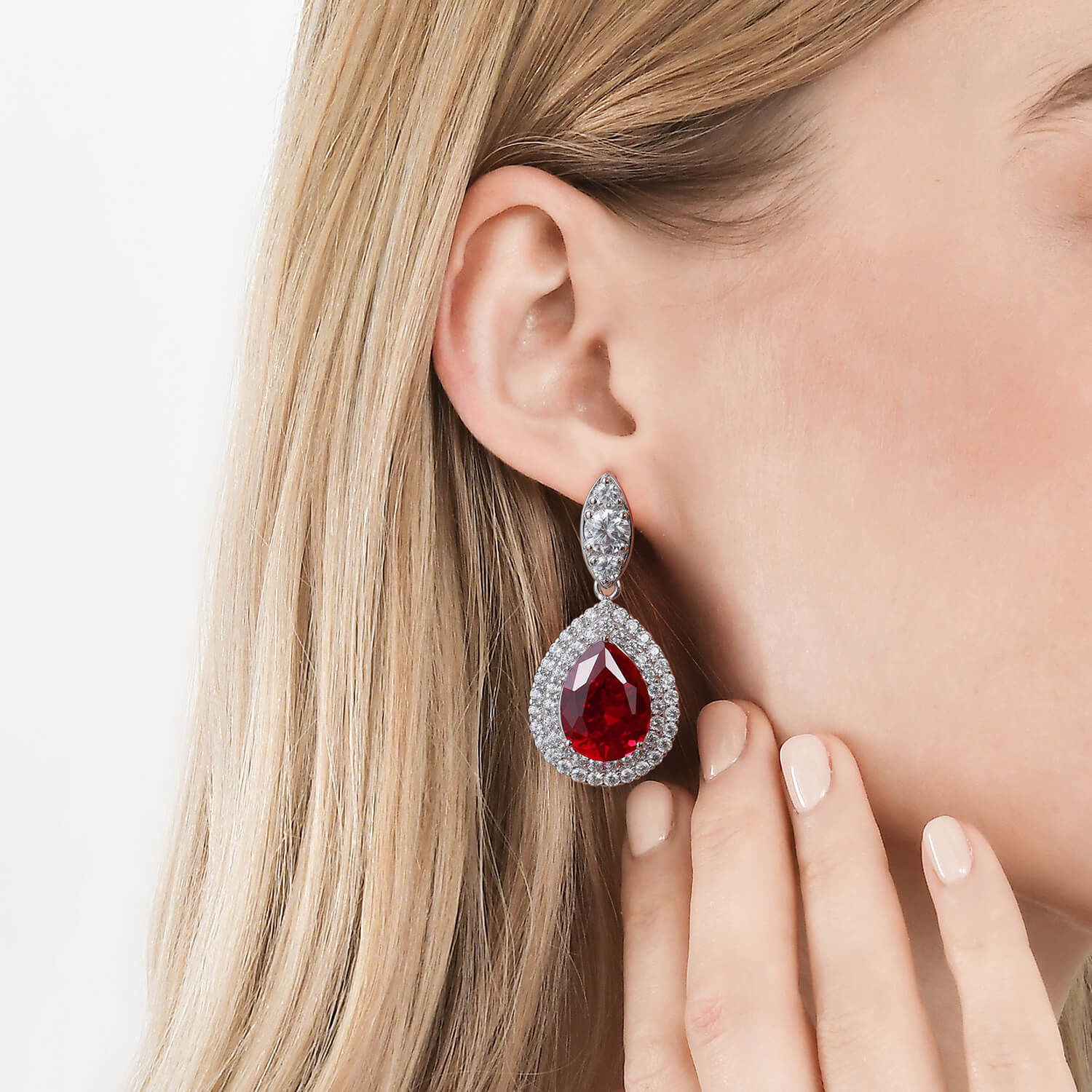 Nun ist es an der Zeit, Ihren Look mit den rubinroten Tropfenohrringen aufzupeppen. Die rubinroten Dissoo®- Ohrringe Die Steine haben eine schöne Tropfenform und sind von weißen Zirkon-Edelsteinen umgeben, die zu ihrem besonderen Ambiente beitragen.