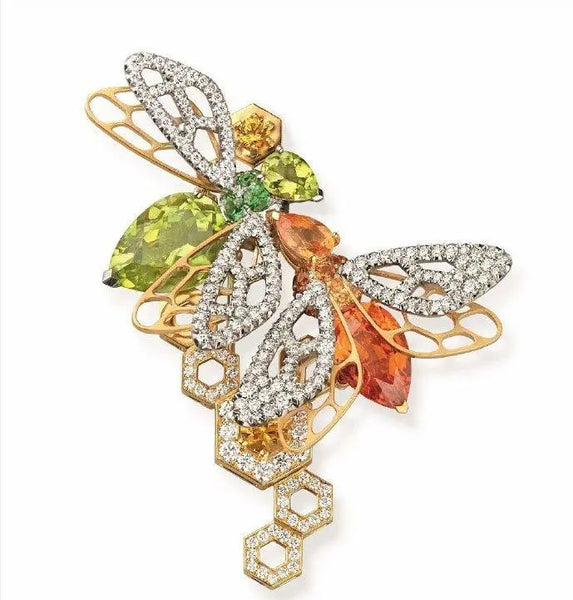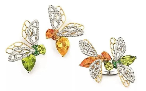 The design of the series is all based on the theme of bees, and the various forms of bees are shaped with orange and green gemstones. All bees are inspired by the naturalistic style jewelry created by Chaumet in the 19th century.