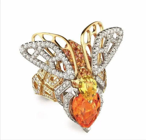 In terms of gemstone selection and matching, the Abeille series not only has spessartite and yellow sapphire, but also can see imperial topaz weighing 23.42 carats, 6.57 carat grossular garnet, and 11.87 carat Ethiopian opal.