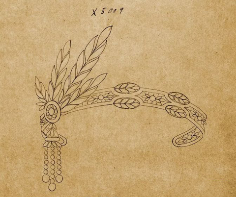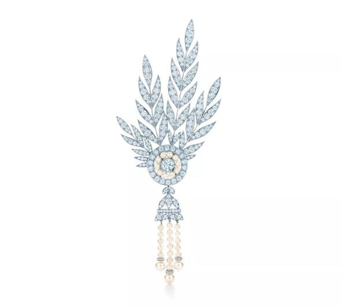 The tiara, which appears frequently in the film, is an important accessory for the actress, and its feathered shape can be detached into a brooch.