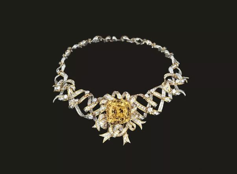 Most fans love to see this movie as a super-long commercial for Tiffany. In the poster for the movie "Breakfast at Tiffany's", Audrey Hepburn wears a "Ribbon Rosette" (ribbon necklace) designed by Jean Schlumberger, which is set with Tiffany yellow diamonds.