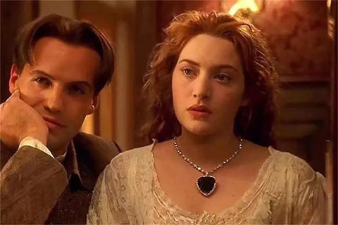 The heart of the sea in the film consists of a huge blue diamond as the main stone, when the director Cameron filming because of the high cost of natural blue diamonds, so choose by the London jeweler Asprey & Garrad to white gold set with blue cubic zirconia made version, its cost of about 10,000 U.S. dollars.