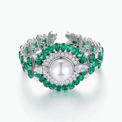 The luxuriously shaped pearl and diamond jewelry is also typical of contemporary high society.