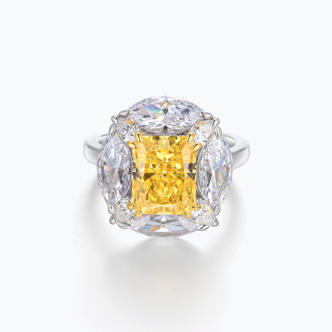 Yellow & White Multi-Stone Cluster Oblong Cocktail Ring