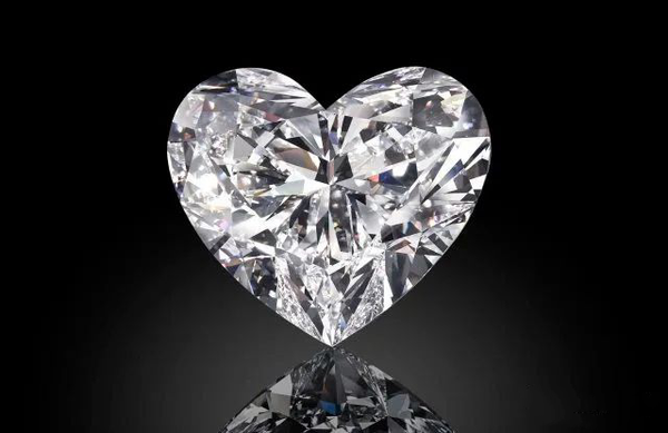 This heart-shaped cut diamond weighs 118.78ct and achieves the highest color grade D and clarity Flawless.