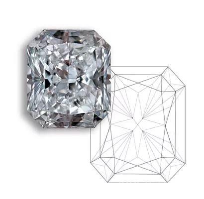 Radiant Cut Diamond A radiant cut diamond has a rectangular or square shape and cropped corners. It has a larger table and less depth, making it appear larger than other shapes of the same carat weight.