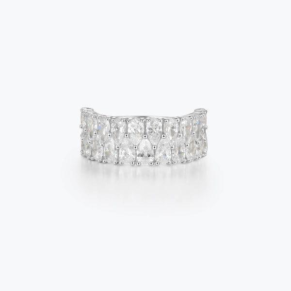 Nail setting is to make use of the ductility of metal, and use tools to chisel out several small nails directly on the edge of the metal material to fix the diamond to any metal claw that fixes the diamond. The closely arranged diamonds are actually set in the metal tongue and groove. Inside. This setting method needs to pay attention to whether the size and height of the diamonds are consistent and the order of the diamonds. Since there is no metal surrounding, the diamond can penetrate and reflect more light, highlighting the dazzling light of the diamond jewelry. Peg setting is mostly used in group setting diamond decorations and becomes the embellishment of luxury models. But a word of caution: It is very difficult to change the size of a ring if the entire ring is set. We strongly recommend that when customizing the ring, you must determine the size of the ring, so that there will be no problems after the ring is completed.