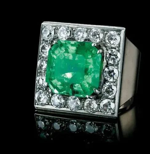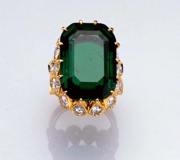 Initially, the ring only had one row of pave settings, but in 1958, the Duke of Windsor sent the ring back to Cartier to change the style, replacing the setting with gold and adding a row of diamonds around the emerald.