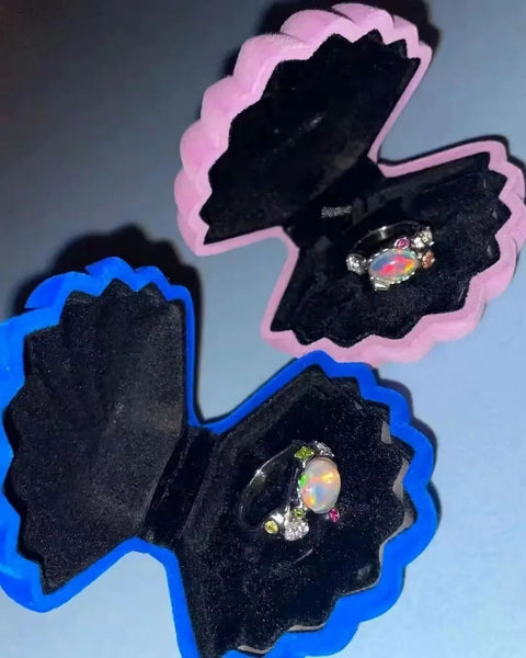 Their engagement ring is a pair, with Hyuna's favorite opal as the main stone, surrounded by seven colorful diamonds personally selected by Kim Hyojong.