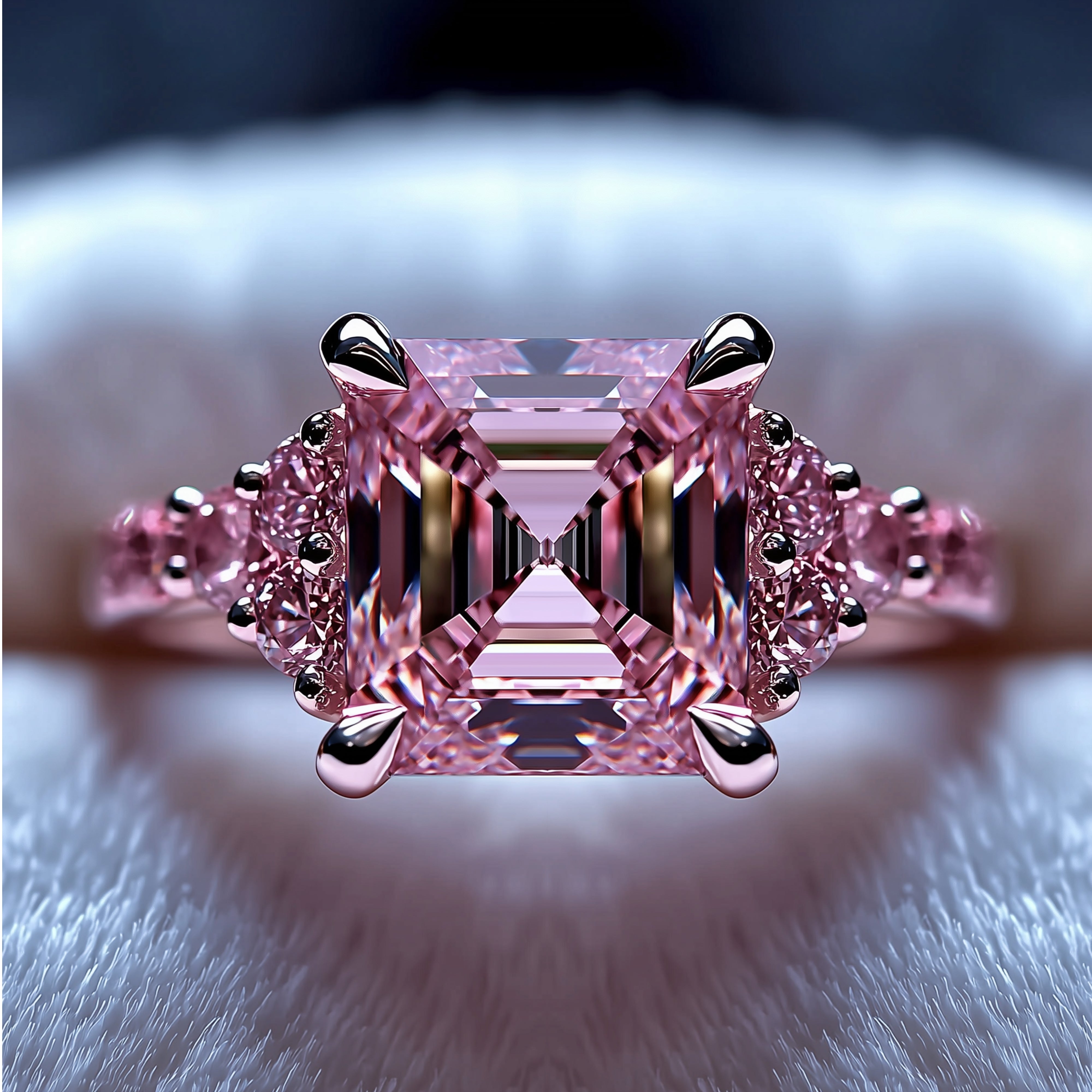 Kristina Asscher Cut Pink Gemstone Engagement Ring