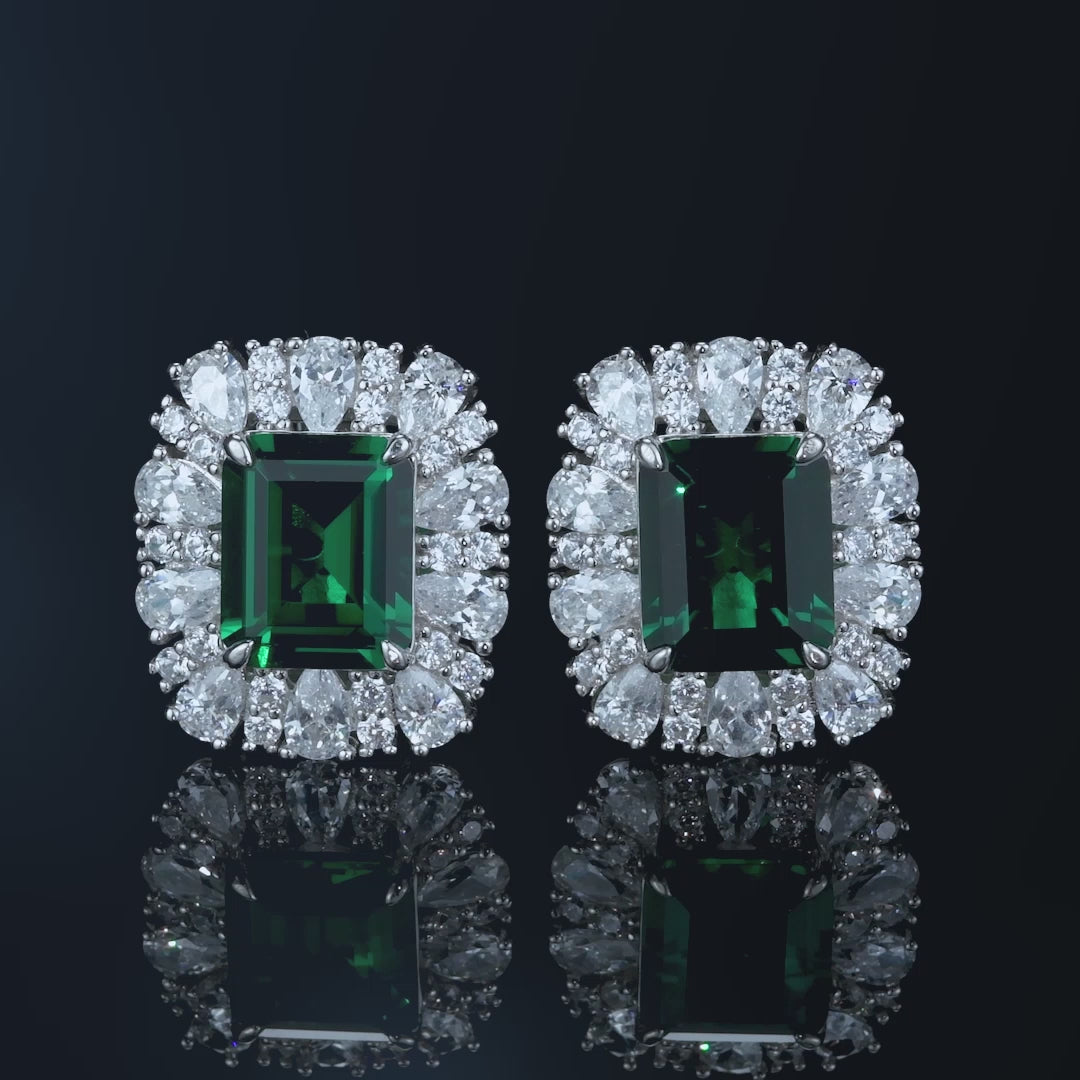 Sterling Silver Petal Square Emerald Cut Green Gemstone Earring