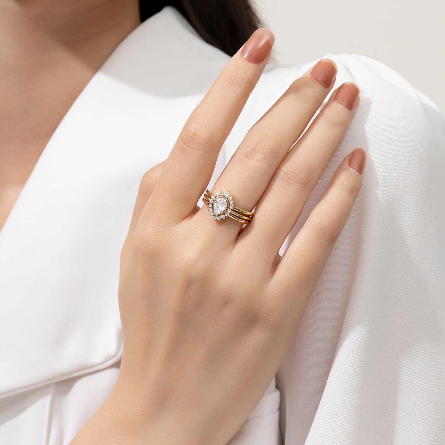 Paired with a perfectly contoured matching band, this set celebrates love that is enduring, meaningful, and beautifully unique. Designed for proposals, anniversaries, and cherished milestones, it speaks of devotion, individuality, and a romance that feels timeless yet personal.