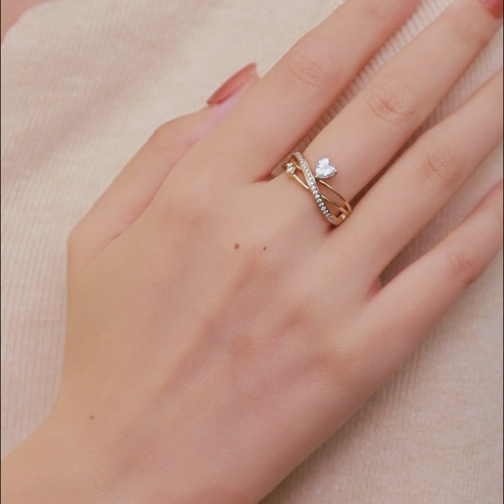 Découvrez la sublime bague de fiançailles Dissoo® Gold Heart Moissanite Multi-Row Crossover, un véritable chef-d'œuvre d'art et de design. Avec sa pierre centrale Moissanite taille cœur de 0,5 carat, cette bague vous laissera sans voix.