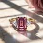 Bague en pierre précieuse rose taille émeraude Séraphyne