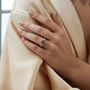 La Solandra n'est pas pour les âmes sensibles : elle est faite pour celles et ceux qui savent que l'amour doit être aussi saisissant qu'intemporel. En son centre brille un rubis rouge émeraude de synthèse, taille émeraude, rayonnant d'élégance. Encadré d'un somptueux bouquet de pierres vert foncé taille marquise et de touches de blanc étincelant, ce bijou capture le charme d'un romantisme d'antan et la splendeur d'une nature en pleine floraison.