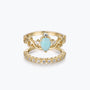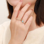La bague de fiançailles est complétée par l'alliance demi-éternité en moissanite, ornée de mini-diamants simulés qui scintillent sous tous les angles. L'anneau demi-éternité symbolise l'amour éternel qui vous unit, tandis que les pierres de moissanite offrent un écrin étincelant à la pierre précieuse amazonite.