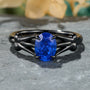 Bague en or noir sertie d'un rubis de laboratoire ovale Azura à la texture craquelée